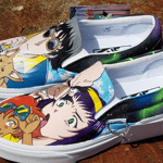 This Dope Pair of Custom Vans Slip-on Feature Spike & the gang. And features a galaxy design all around the back of the slip on, As always these are painted using Angelus paints and sealed using LK top coat for that extra protection when out in the elements, so slip into these for a nice summer pair to rock or display!